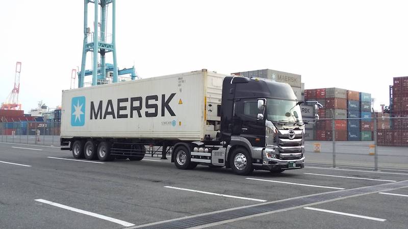 コンテナヤードに向かい、これから輸送するコンテナを乗せてもらいます。
